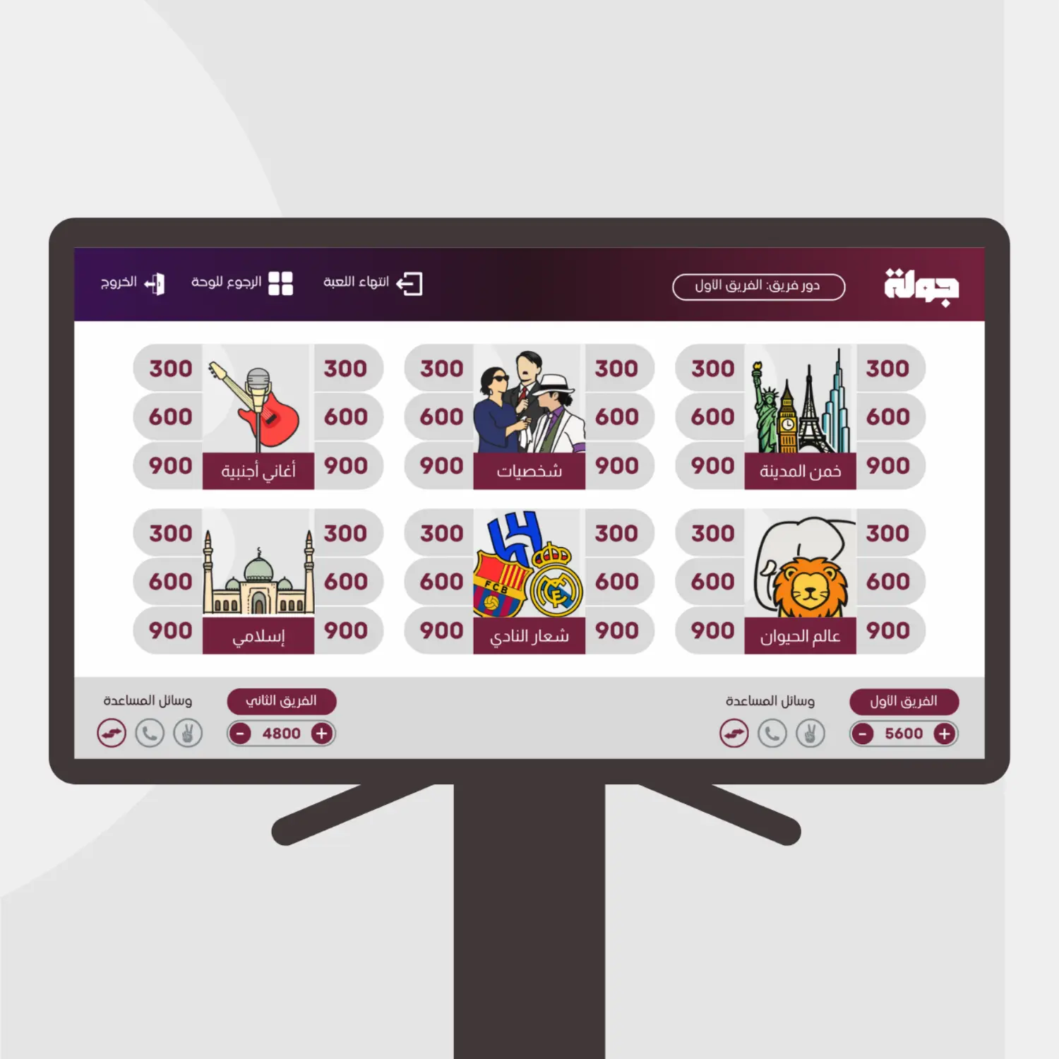 نبذة عن جولة :لعبة جماعية تفاعلية تختبر سرعة التفكير وروح التحدي بين اللاعبين، تضم ٦ فئات و٣٦ سؤال متنوع مع ٥ وسائل مساعدة تزيد الحماس والتشويق!